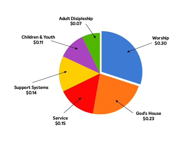 Of every dollar you generously give to support the Basic Ministry Budget, 30 cents support worship.