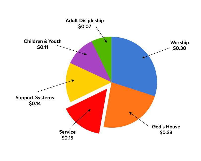 Out of every dollar you generously give to support the Basic Ministry Budget, 15 cents of it supports Support Systems.