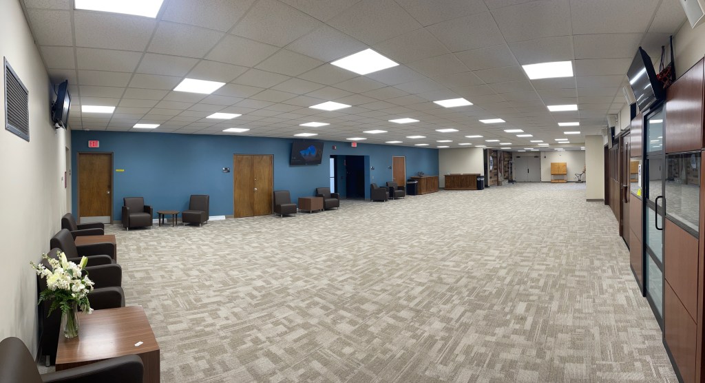 What a beautiful and bright space in which to gather! This month the church main lobby has been renovated with an open floorplan to the north lobby and ease of access to the Worship Annex. The congregation is already enjoying the expanded space for conversation. The removal of walls, relocation of an electrical panel, and installation of new lights, were all completed in two weeks time. Thank you to the incredible work crew and our Trustees that oversaw the project. We also give glory to God for the generous anonymous donor whose gift made the renovation possible. Our Hospitality Team is excited to review the space in order to best utilize the room for Coffee Fellowship and the Welcome Desk. This is a season of praise as we celebrate this wonderful transformation that will help PUMC continue to be a place of warm welcome, belonging, and growth in grace and community.