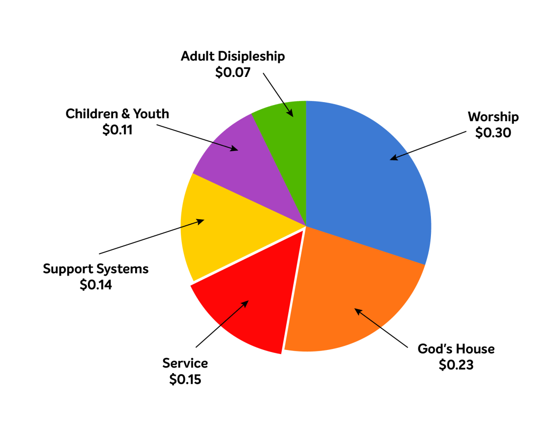 Out of every dollar you generously give to support the Basic Ministry Budget, 15 cents of it supports Service to Others.